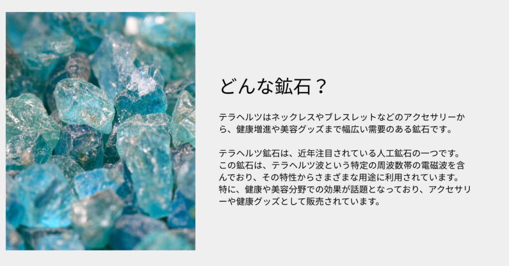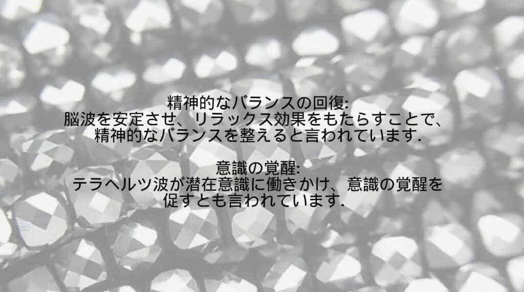 テラヘルツ鉱石、この名前を聞いたことがなくても、落ち着いたシルバーのアクセサリーに見覚えがあるかもしれません。実はこの鉱石、ただの装飾品ではないんです。美容や健康にも役立つ、不思議なパワーを秘めた人工鉱石です。